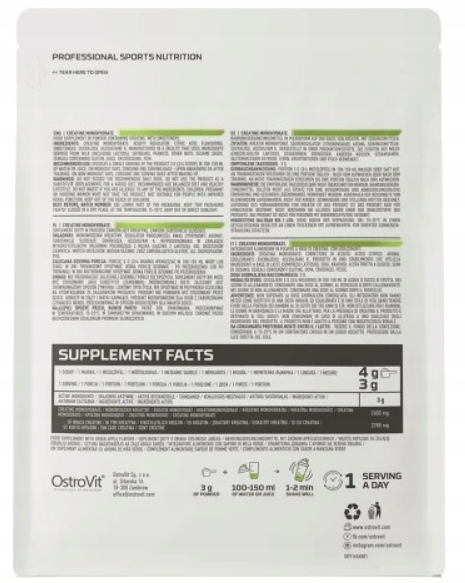 OstroVit Monohydrat Kreatyny to wysokiej jakości suplement diety, który stanowi źródło kreatyny w postaci monohydratu