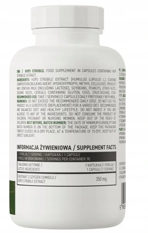 ✅ Zawiera ekstrakt z szyszek chmielu DER 4:1 - jedna porcja suplementu diety dostarcza do organizmu 350 mg ekstraktu.