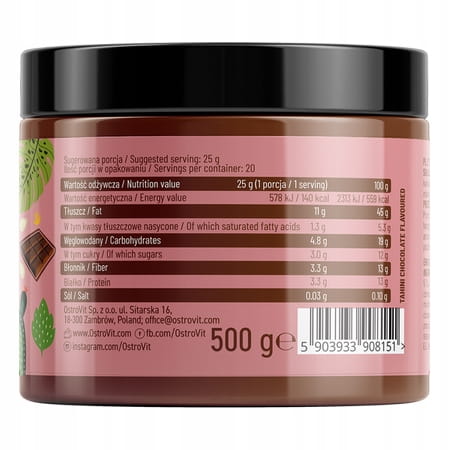 PASTA SEZAMOWA KAKAO KREM CZEKOLADOWY MIÓD OLEJ MCT OSTROVIT TAHINI 500G