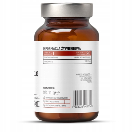 OstroVit Pharma Koenzym Q10 to suplement diety zawierający koenzym Q10 w dawce 100 mg w porcji.