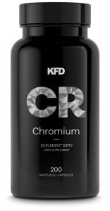 KFD Chromium – 200 kaps jest suplementem diety, mającym na celu uzupełnienie niedoborów chromu w diecie. Chrom jest pierwiastkiem naturalnie występującym w ciele człowieka,przykładowo w tkance stawowej.Zastosowany w produkcie pikolinian chromu, jest wysoce przyswajalną formą tego minerału. To właśnie tę formę zastosowano w wielu badaniach naukowych, które potwierdziły pozytywny wpływ tego pierwiastka na gospodarkę glikemiczną. W opakowaniu znajduje się aż 200 dziennych porcji suplementu, w wygodnej formie kapsułek. Każda z nich dostarcza aż 200 µg chromu. Niedobory tego minerału mogą prowadzić między innymi do zwiększenia apetytu czy zaburzeń nastroju. Według publikacji naukowych, suplementacja chromem potencjalnie może przynieść korzyści w postaci zmniejszenia poziomu apetytu, a w rezultacie do przyjmowania mniejszej ilości pokarmu.