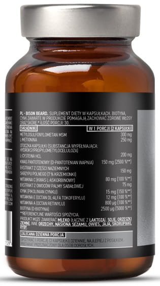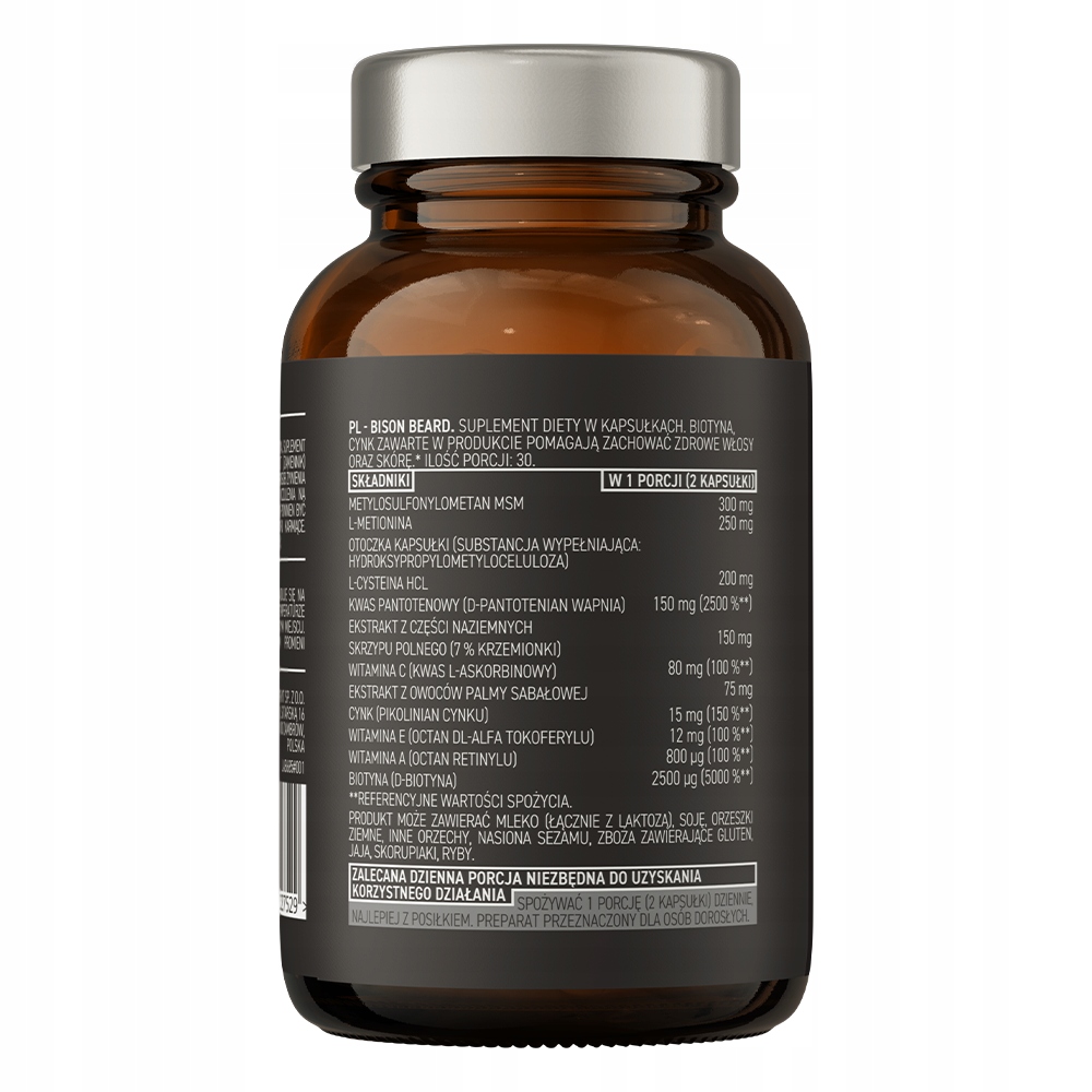 OstroVit Pharma Bison Beard to kompleksowy suplement diety, który zawiera zestaw 11 cennych składników, m.in. L-metioninę, ekstrakt z owoców palmy sabałowej czy cynk.