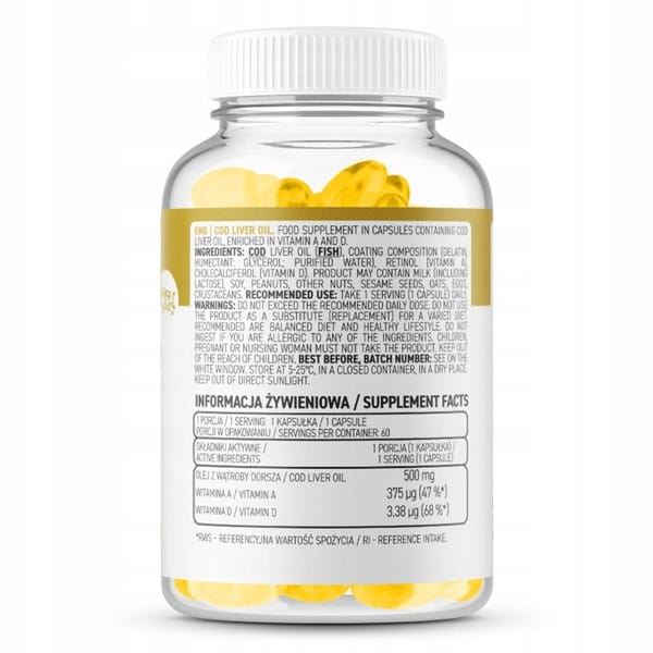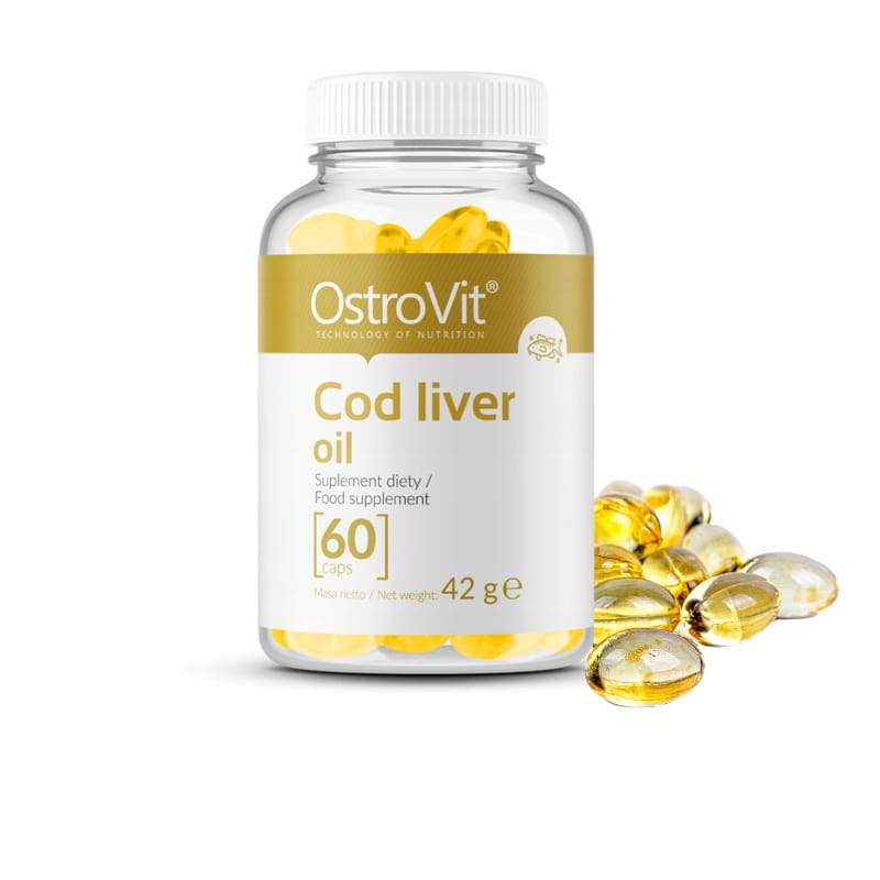 OstroVit Cod Liver Oil to suplement diety w kapsułkach zawierający olej z wątroby z dorsza atlantyckiego, wzbogacony w witaminę A oraz D.