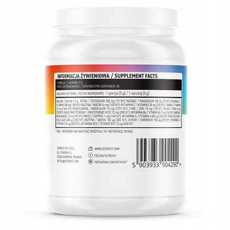 OstroVit Vit&Min Powder to unikalny kompleks witamin, minerałów oraz innych składników aktywnych, które wspierają ogólne zdrowie Twojego organizmu.