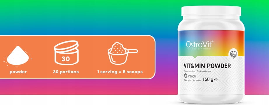 Preparat multiwitaminowy OstroVit Vit&Min Powder zawiera składniki, które wspierają pracę wielu narządów oraz układów. Sprawdź, jakie są jego najważniejsze właściwości: