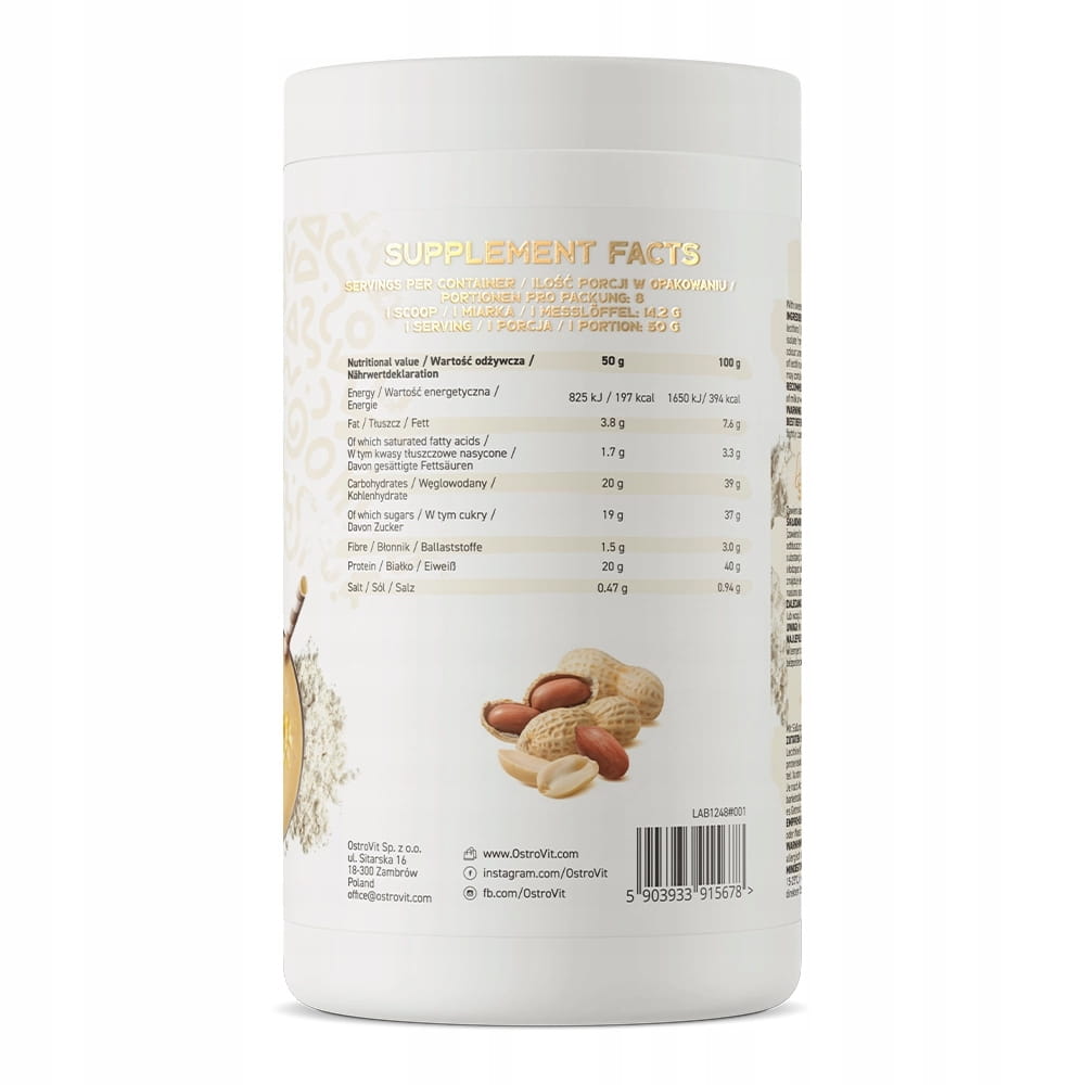 To preparat dostępny w postaci proszku o pysznym smaku orzeszków ziemnych.