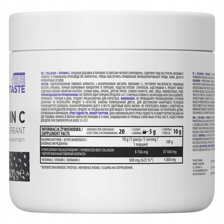 OstroVit Kolagen + Witamina C to najwyższej jakości suplement diety w proszku stworzony w smakowych wariantach linii OstroVit TRUE TASTE.