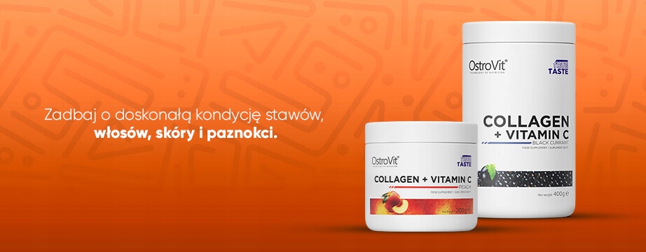 Odżywka OstroVit Kolagen + Witamina C składa się z dwóch aktywnych składników, które wspólnie się uzupełniają, a suplementacja ich idealnie wspomoże działanie naszego aparatu kostno-stawowego, zapewni utrzymanie mięśni i prawidłowego funkcjonowania chrząstki stawowej.