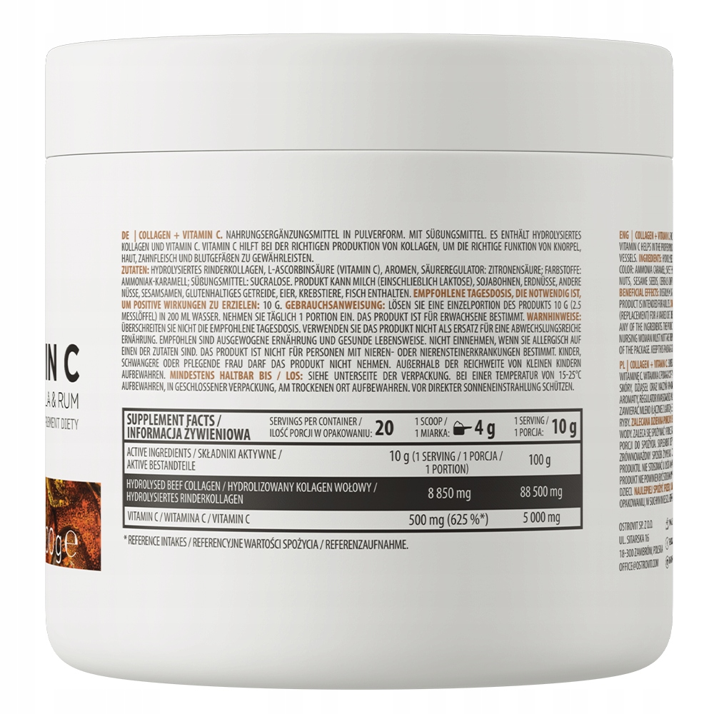 ZDROWE KOŚCI REGENRACJA STAWÓW OSTROVIT COLAGEN + WITAMINA C 200 G COLA&RUM